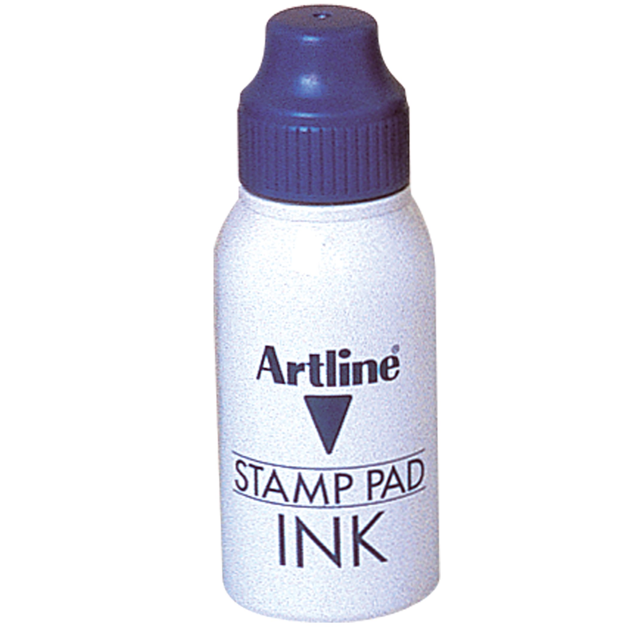 Suitable for standard stamp pads. 50CC. Unique nozzle for easy, no mess re-inking.