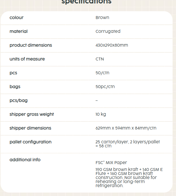 Brown Corrugated Rectangle Catering Tray Medium Plus 50pc/ctn